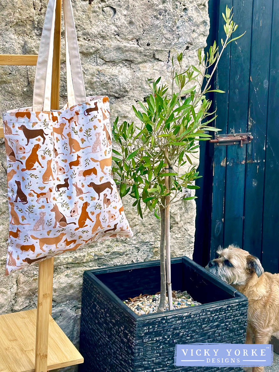 Searching for the ultimate designer dog gift? This tote bag is a thoughtful, high-quality present for anyone who adores dogs, appreciates nature-inspired patterns, and supports British made gifts and independent designers like Vicky Yorke Designs.
